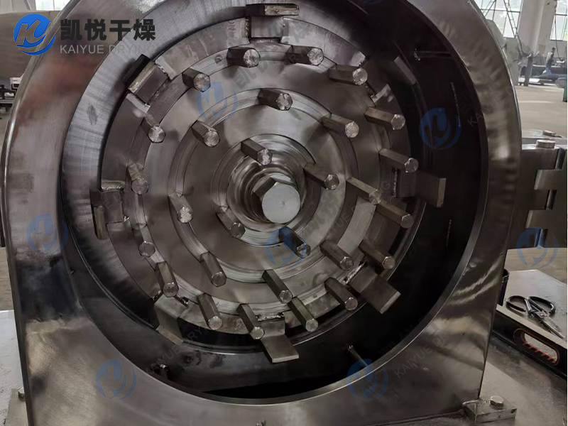 2、本机的工作原理是物料进入粉碎室,在高速旋转的活动齿盘与固定齿盘间受齿的冲击、剪切、磨擦及物料间的相互撞击的作用下被粉碎,经筛网筛选后即成为所需的粉料。